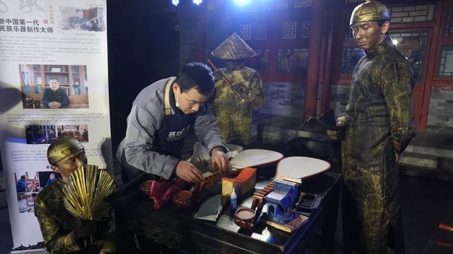 公演に加え、現場には楽器製作の実演コーナーも設けられていた。李楽平氏などベテランの楽器職人がその場で二胡や琵琶、中阮などを作り、観客は足を止めて見入っていた。